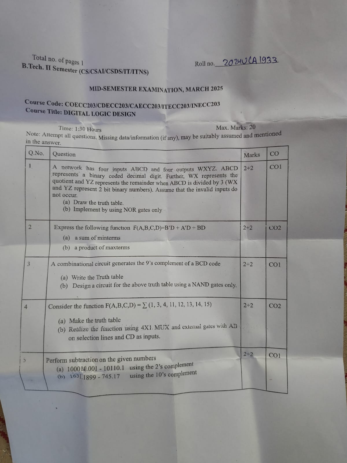Important topics: Kmap, Comparator, Code convertors